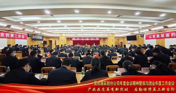 揚帆啟航新征程,踏浪前行向未來。2月21日上午8點18分,公司在辦公樓西二樓會議室召開貫徹落實股份公司年度會議精神暨雙溝酒業(yè)年度工作會議。股份公司副總裁、公司黨委書記、總經(jīng)理李玉領對股份公司年度會議精神進行宣貫落實,并全面部署雙溝酒業(yè)2023年工作,公司黨委副書記耿忠祥總結回顧2022年工作成績,公司副總經(jīng)理崔鳳元主持會議,各部門、車間及派駐機構中層助理以上人員、班科長代表和受表彰的單位、員工代表參加會議。